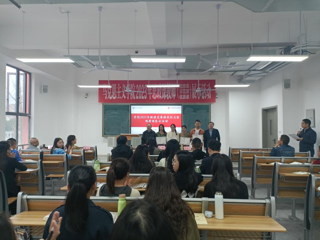 孙杰院长、汤海生副教授、邓丽老师分别以《完整、准确、全面贯彻新发展理念》、《领悟人生真谛,把握人生方向》、《追求远大理想,坚定崇高信念》为主题,进行了观摩课讲课和教学经验分享。周婷婷、王晴两位青年教师对三位老师授课作个人感悟分享,表示受益匪浅。