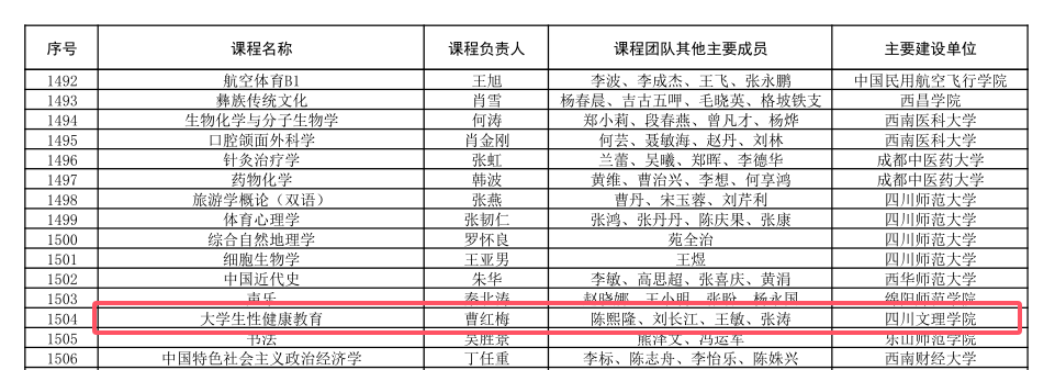 近日,教育部公布了第三批国家级一流本科课程认定名单,我院曹红梅教授负责的《大学生性健康教育》被认定为第三批国家级线上线下混合式一流课程。