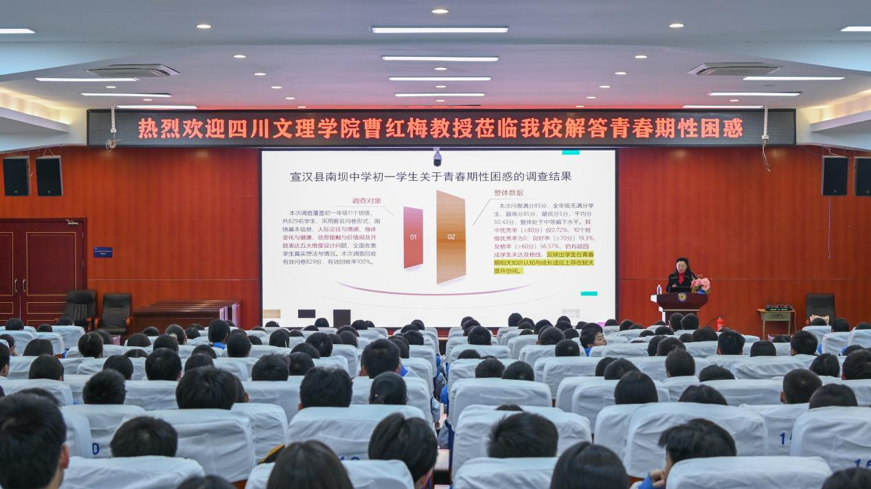 为精准回应青少年青春期身心发展需求,打破对性教育“谈性色变”的传统桎梏,搭建科学、开放的成长沟通桥梁。12月23日,国家级一流课程“大学生性健康教育”课程团队在曹红梅教授带领下走进宣汉县南坝中学,为其中400多名初一年级学生带来了一场主题鲜明、内容翔实的青春期成长专题讲座,旨在帮助青少年正确认识青春期变化,树立健康的性价值观与自我保护意识。