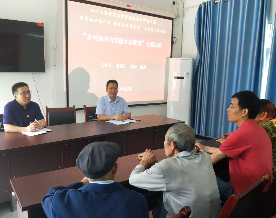 随后刘长江院长作“乡村振兴与美丽乡村建设”专题讲座。围绕着农村党员待遇、农村集体经济组织、农村低保、医保、农村教育、易地搬迁、乡风文明等众多话题,与老洼坪村党支部第一书记朱龙金、村委干部以及部分老党员,进行了深入交流,了解到了脱贫攻坚战中存在的困境和难题。