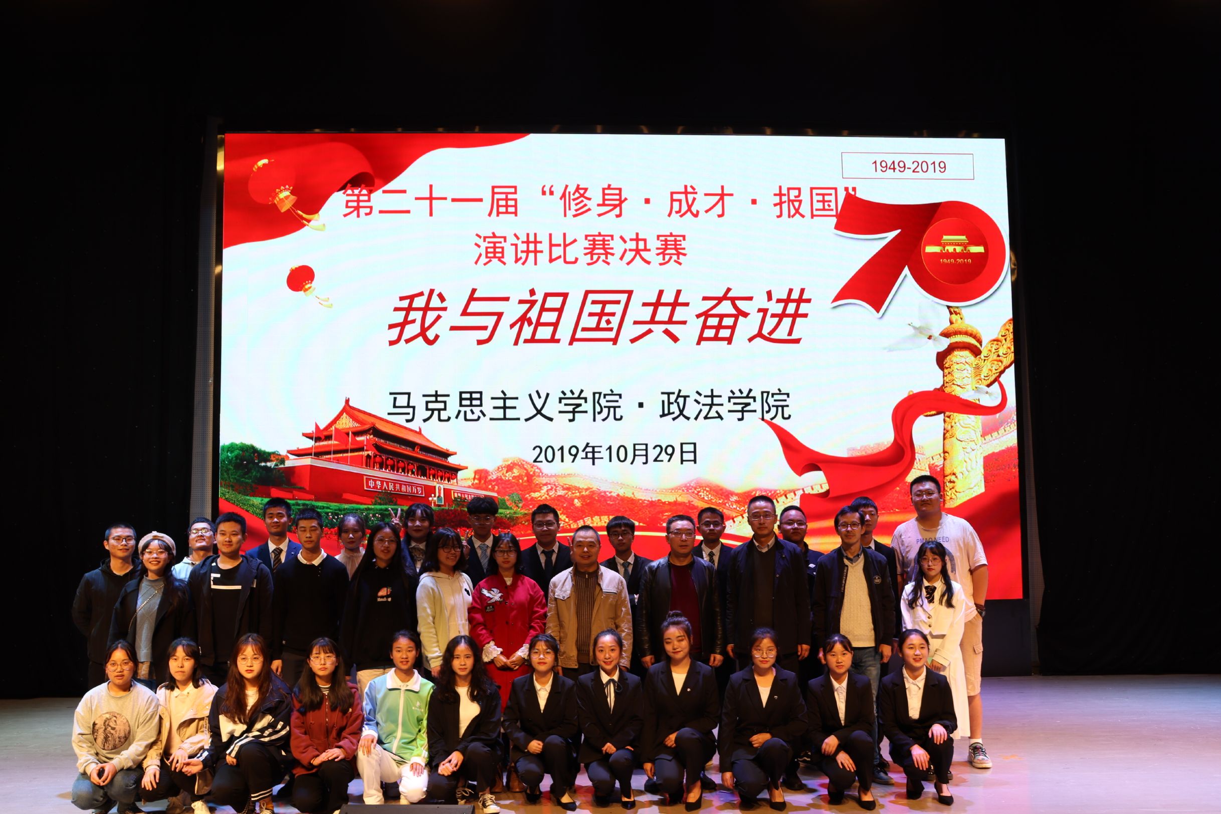 10月29日晚,我院在艺术传媒大楼多功能厅举办以“我与祖国共奋进”为主题的第二十一届“修身.成才.报国”演讲比赛决赛。党总支书记刘春辉、党总支副书记吴辉兵、学工办主任唐幸福、辅导员曾亚、历史与纲要教研室主任王盟、优秀青年教师张岚、2017级优秀辩手蔡润禾担任评委,2018级、2019级学生到场观看比赛。