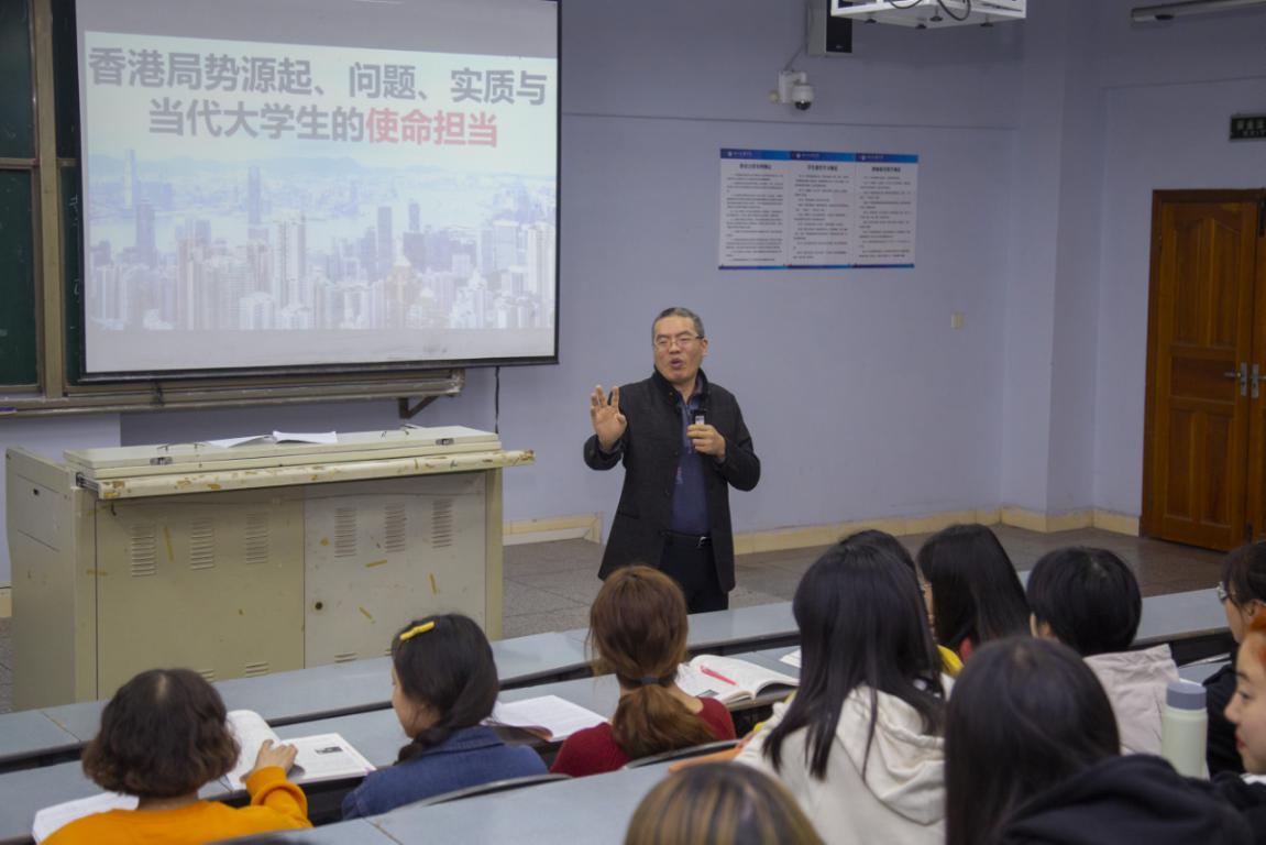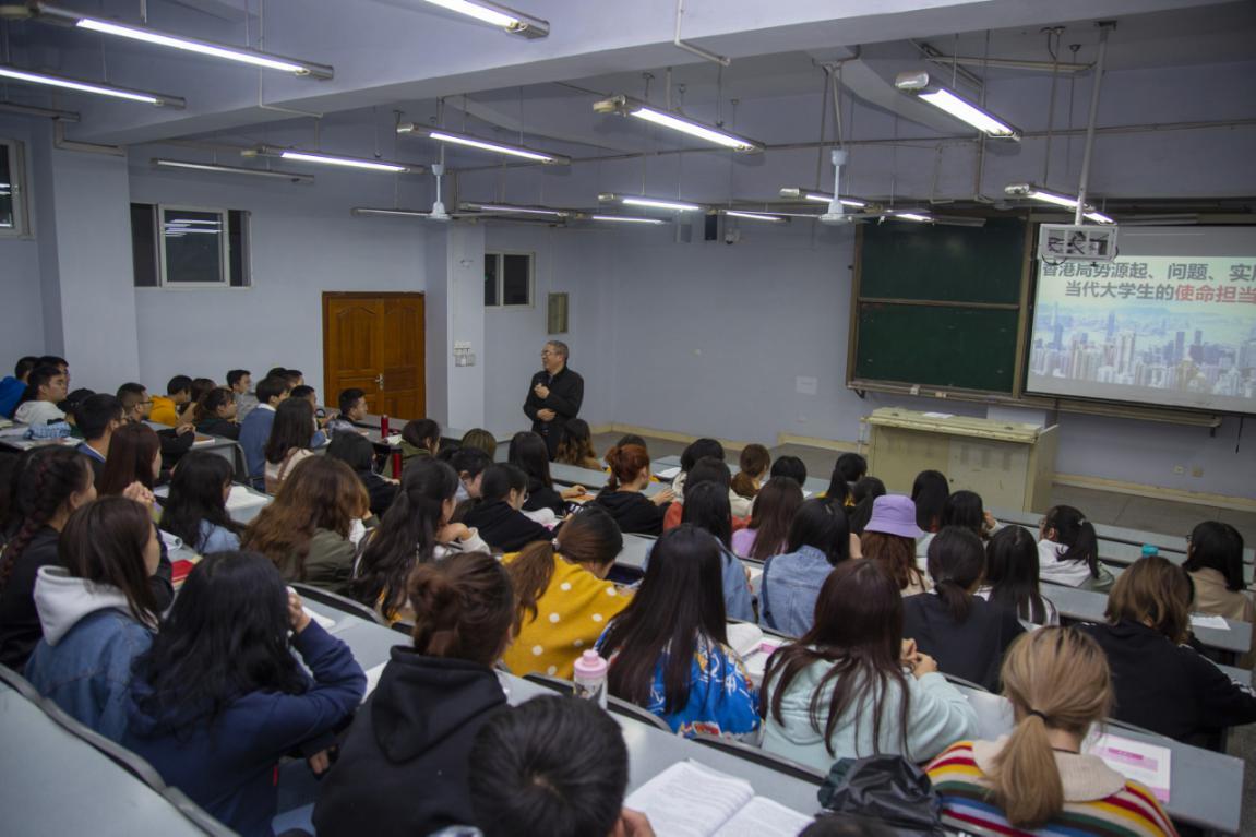 11月4日晚,学校副校长徐晓宗教授在博文楼412教室为文学与传播学院学子讲授题为“香港局势的源起、问题、实质”的形势与政策课。betway西汉姆联平台院长刘长江、文学与传播学院辅导员、2018级部分学生到场聆听。