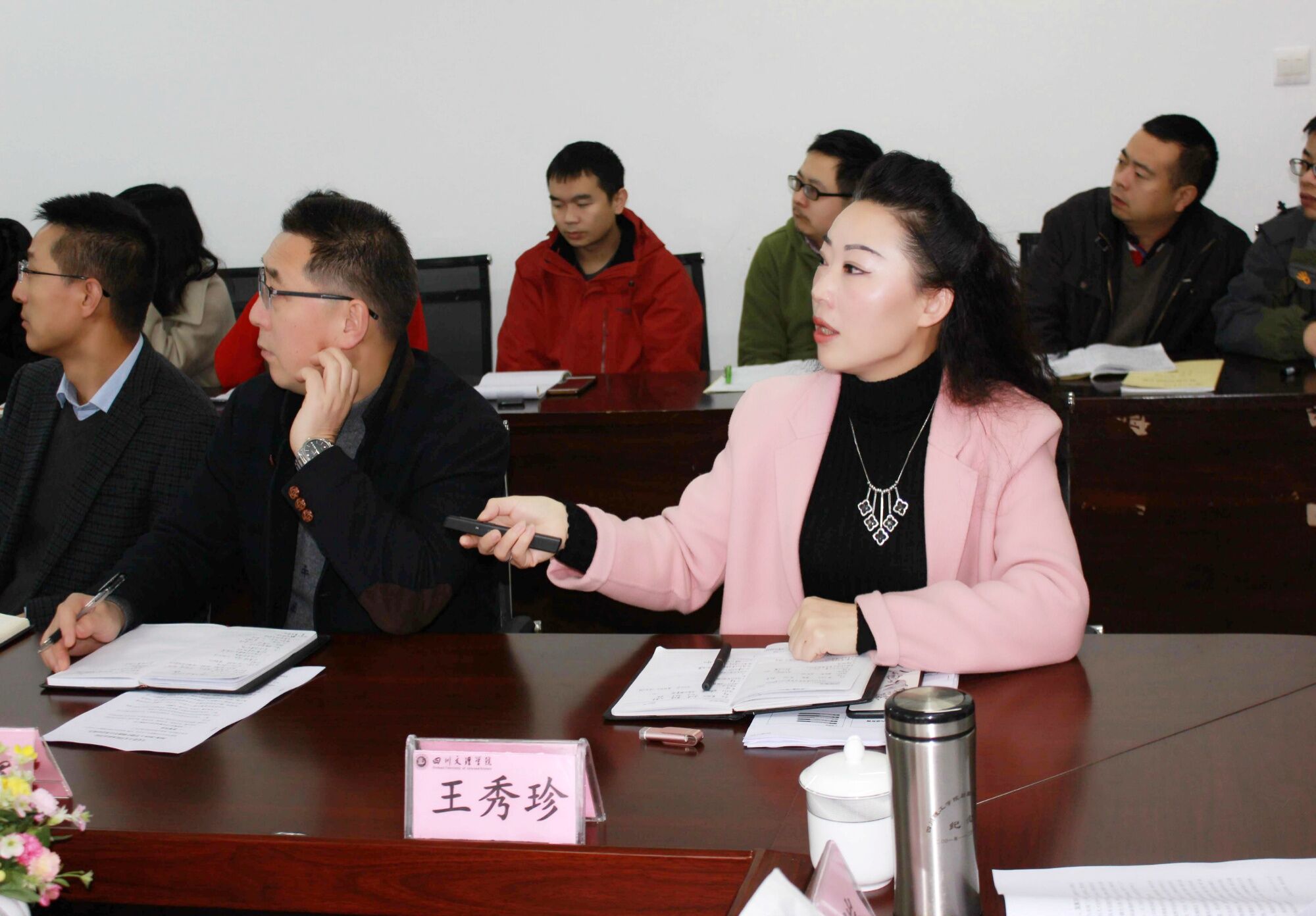 王书记围绕评估日常工作要求对本次教学检查进行了总的安排与部署。随后,王秀珍院长做了主题为“凝神聚力内涵发展”的专题汇报。王秀珍院长从学院审核评估评建简况、师资队伍与教风学风建设、专业与课程内涵建设、质量管理与提升、存在问题与改进五个方面对学院的教学工作进行了详细汇报。会议阶段结束后王成端书记对我们的中期教学检查工作进行了分组,由王成端书记、侯忠明书记带队听课,党(校)办公室主任涂德祥、人事处处长张皓等对资料室进行参观检查,并对学院班子、教研室主任、部分专任教师进行访谈,教务处副处长曾宪文、督导专家杨清平针对毕业论文、期末试卷及学院存档资料进行检查。