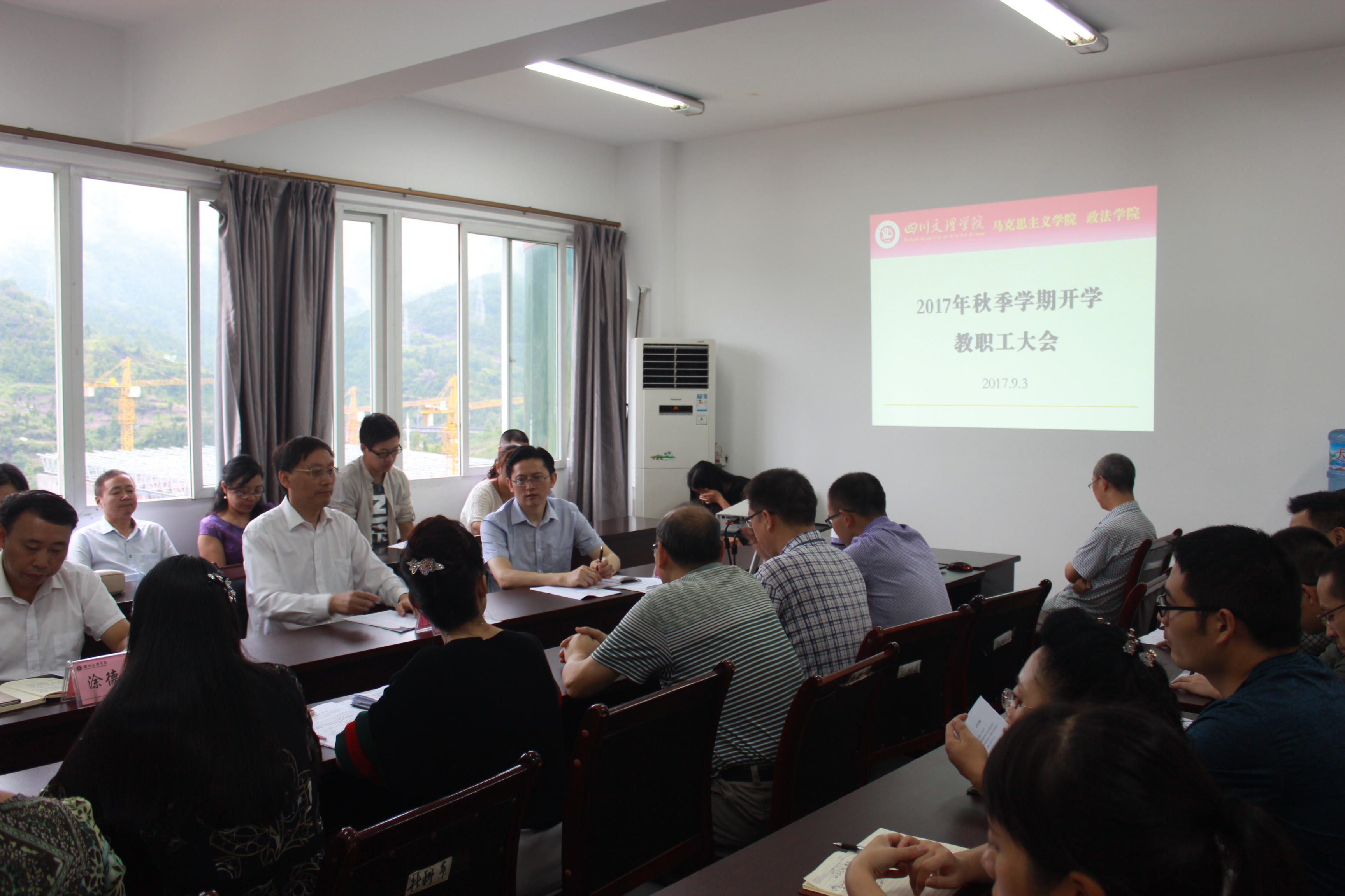 学院院长王秀珍、党总支副书记张善喜、副院长朱德莉,党政办、学工办、教研室主任,全体教职工,学生代表参加了会议。