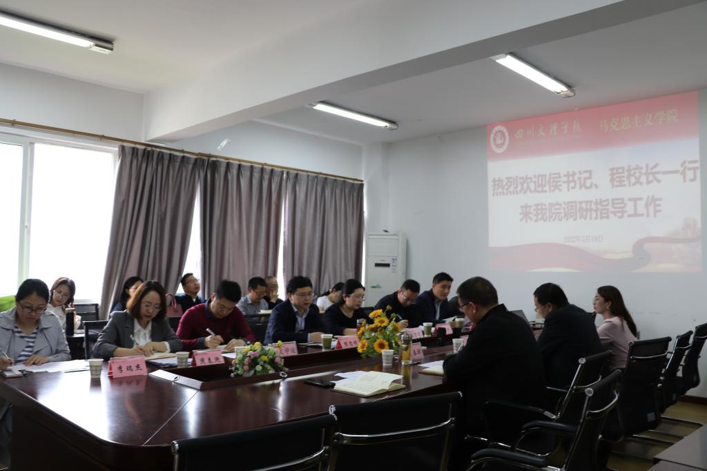 为推动我院思想政治理论课改革创新发展,5月19日上午,学校党委副书记侯忠明、副校长程碧英一行深入我院,就学院建设和思想政治理论课改革创新展开专题调研活动,学校党委宣传部、教务处、人事处、评估处、科技处等有关部门同志以及betway西汉姆联平台党政班子和部分教师代表参加了调研座谈会。