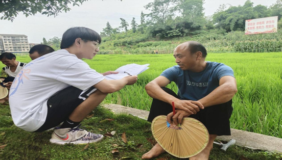 团队学生走上田间地头与村民访谈交流