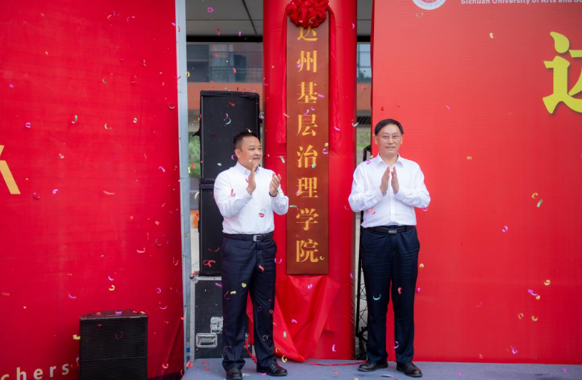 9月29日上午,由中共达州市委组织部和学校共建的“达州基层治理学院”揭牌仪式在莲湖校区艺术传媒大楼前隆重举行。中共达州市委常委、组织部部长江彬出席会议,学校党委书记王成端致辞,党委副书记、校长刁永锋主持仪式。