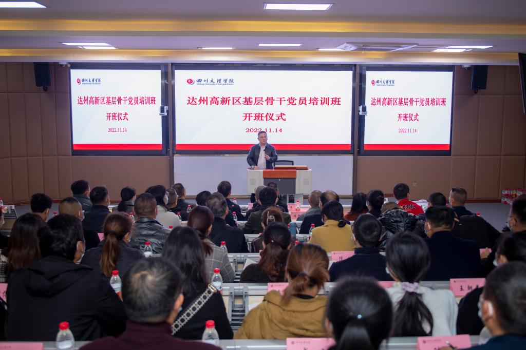 11月14日,达州高新区基层骨干党员培训班在我校开班。学校党委常委、组织部部长涂德祥致辞,达州高新区党工委专职副书记宁小礼出席并讲话,betway西汉姆联平台党总支书记刘春辉出席,校地合作处处长姜约主持开班式。