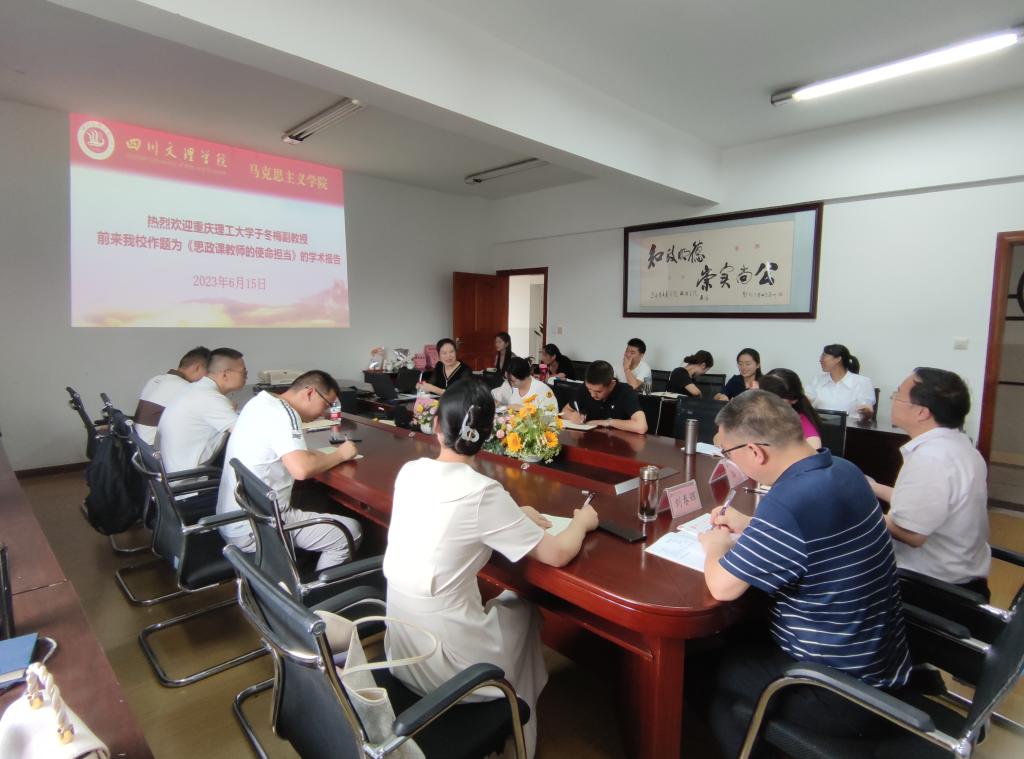 6月15日,重庆理工大学于冬梅副教授应邀在我校博文楼611会议室作题为《思政课教师的使命担当》的学术报告。betway西汉姆联平台院长孙杰主持,betway西汉姆联平台党委书记刘春辉及全院教师参会。