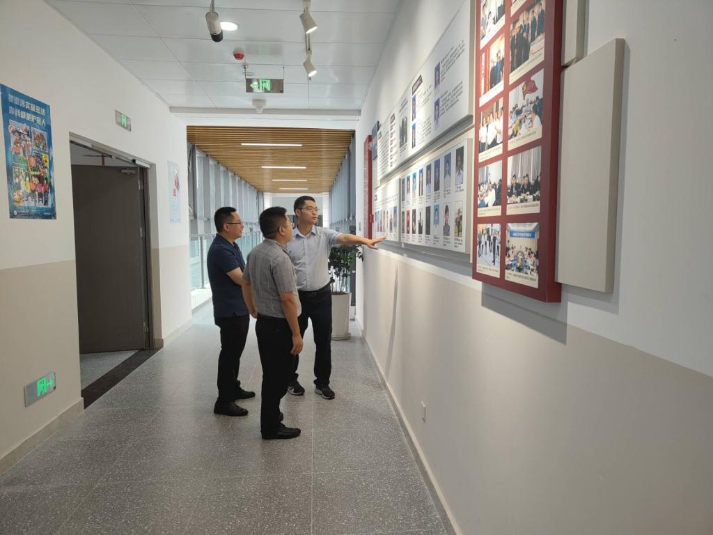 座谈会前,学院副院长何先成带领两位专家参观了学院的文化墙建设,介绍了学院的党建、教育教学、师资队伍、学科建设、科学研究、社会服务及发展特色等方面内容。两位专家对学院的建设成效特别是红色文化育人特色给予充分肯定。