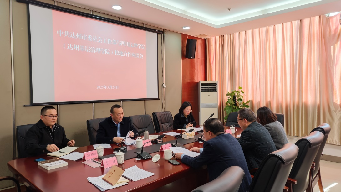 2025年3月24日,betway西汉姆联平台党委书记刘春辉,betway西汉姆联平台院长、达州基层治理学院副院长孙杰,betway西汉姆联平台党委副书记、纪委书记周春滟赴中共达州市委社会工作部开展校地合作交流,并开展毕业生拓岗工作。达州市委社会工作部部长、“两新”工委书记余世斌同志主持召开校地合作座谈会。