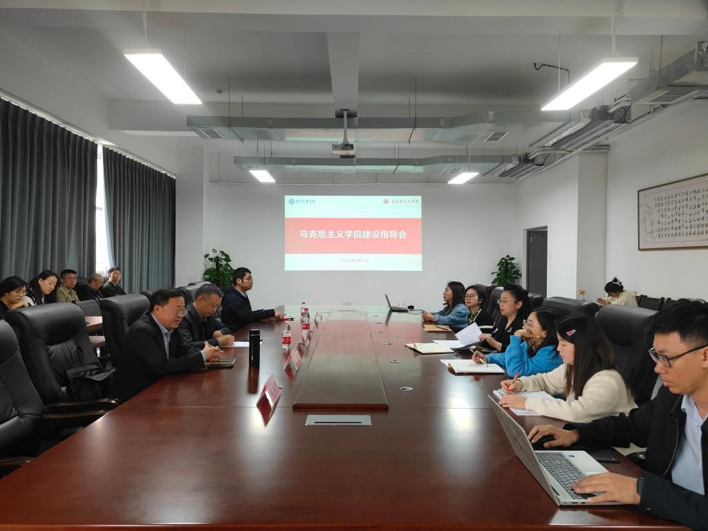 会议伊始,我院领导对学院目前的整体发展情况进行了简要汇报,包括在教学、科研等方面取得的成果以及面临的挑战。随后,李奋生从骨干学院申报、学科建设、精彩一课讲课比赛和学生作品四个方面进行了指导,强调申报省级骨干马院要突出学院特色、大力整合资源;学科建设需打破壁垒、贴合实际;精彩一课比赛应注重特色、活跃课堂;学生作品要强化实践指导、加大奖励投入,为学院发展提供清晰思路。李教授的讲话引发了与会人员的热烈讨论,大家纷纷就相关问题提出自己的疑问和见解。在交流互动环节,他耐心地为大家答疑解惑,现场气氛十分活跃。