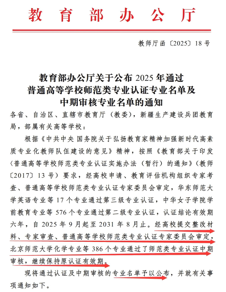 近日,教育部办公厅发布了《关于公布2025年通过普通高等学校师范类专业认证专业名单及中期审核专业名单的通知》(教师厅函〔2025〕18号),betway西汉姆联思想政治教育专业顺利通过师范类专业认证中期审核,认证有效期继续保持至2028年6月。这是我校首个参加师范类专业认证的专业,自2022年7月通过教育部二级认证以来,专业建设成果再获权威认可,这为学校其他师范专业认证工作积累了宝贵经验。
