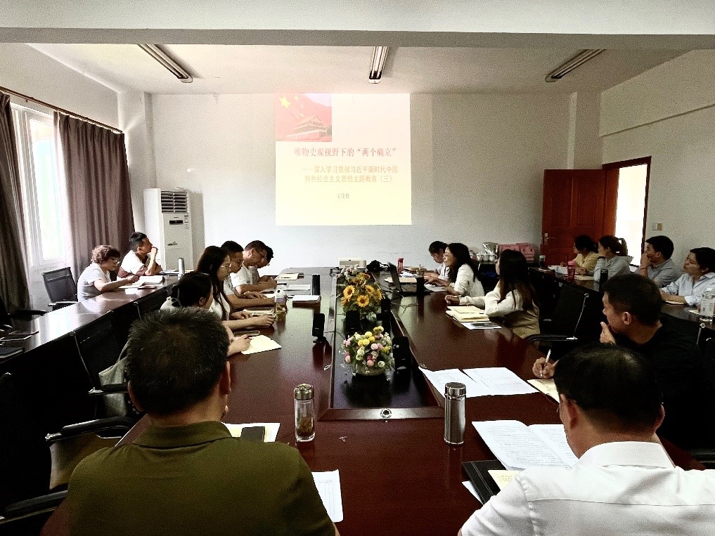 为深入学习贯彻习近平新时代中国特色社会主义思想主题教育,按照“学思想、强党性、重实践、建新功”的总要求,加强理论研究阐释和宣讲,我院于2023年5月16日在博文楼611会议室开展“新时代新思想思政大讲堂”,“大讲堂”第三讲由马克思主义基本原理教研室主任文茂群副教授主讲。