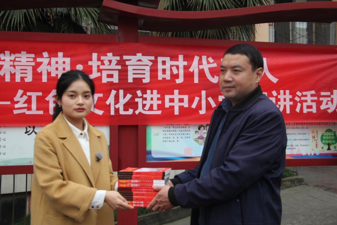 在红色文化宣讲活动中,研究会组织了两个宣讲组,进入耀华育才学校的两个班级对学生进行红色文化教育。宣讲组通过讲解革命战争年代川陕革命老区涌现出的张爱萍、陈伯钧等英雄人物及其感人事迹,倡导学生向革命先烈学习,争做新时代好少年。并通过开展击鼓传花等活动,在活动中邀请学生唱红歌、讲红色故事、扮演红色人物,推动学生进一步将红色文化中所蕴含的精神价值入心入行。此外,教师李沵芮代表betway西汉姆联平台和研究会还为耀华育才学校捐赠了100册红色故事书籍,以进一步推进红色文化进课堂及达州市大中小学校思政课一体化建设。