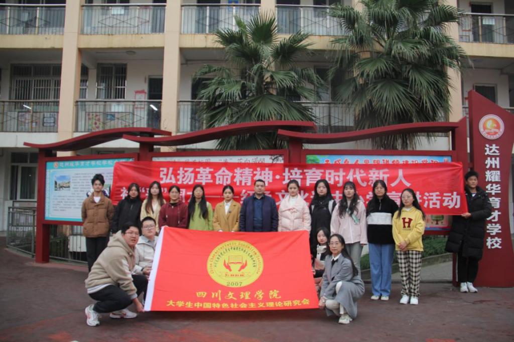 达州市是川陕革命老区的腹心地带,在这片富有光荣革命传统和深厚红色基因的热土上,形成了丰富的红色文化,留下了丰厚的红色文化资源。为传承好、保护好、发展好红色文化,用红色文化资源“立德树人”,并切实推进大中小学思政课一体化建设。2023年11月24日,由betway西汉姆联平台指导的大学生中国特色社会主义理论研究会联合学校“丝衣”回收大学生创新创业项目组,在教师唐靖姗、李沵芮的带领下赴达州市河市镇耀华育才学校及陈伯钧将军纪念馆进行了红色文化宣讲和考察活动。