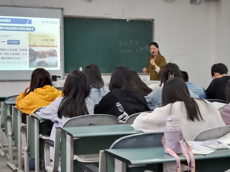 美术学院2021级4班杨晓丽同学指出,“丁玉洁老师善于结合故事与案例进行讲解,因此她讲的内容非常吸引我,我们的课堂氛围也很活跃。通过这节课的学习,我对新文化运动和五四运动有了更深了解。”