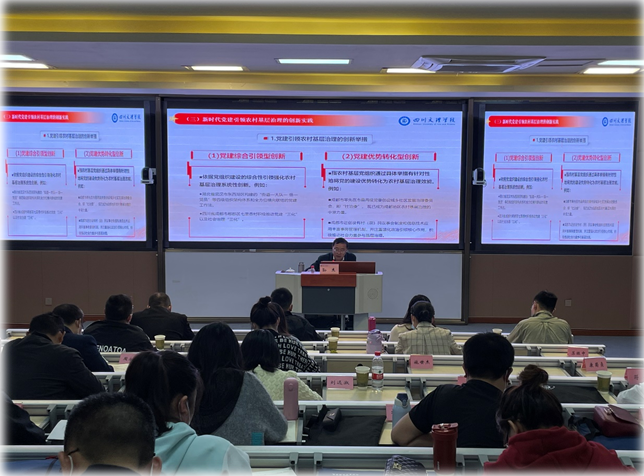 10月12日下午,我院院长孙杰教授在莲湖校区博文楼313教室为万源市“2022年新时代治蜀兴川优秀年轻干部递进培养班”做专题讲座,51名学员聆听了此次讲座。