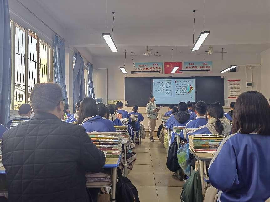 刘春辉一行在达州铁路中学党委书记书记张艳、校长周宇博等人陪同下,一起走进课堂,开展观摩课教学交流。铁路中学胡老师以《高质量发展》为题,结合通川区乡村特色产业发展,展示了一堂精彩生动的关于习近平经济思想内容的观摩课。我院青年教师丁玉洁以“高尚的人生追求”为题,以周永开先进事迹为例,讲授了一堂富有思想性、教育性、启发性的思想道德修养课。