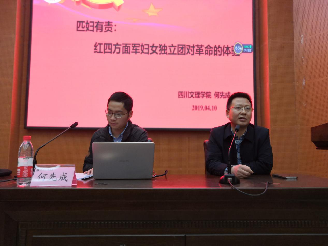 4月10日晚上7点,四川革命老区发展研究中心何先成博士在莲湖校区学术报告厅B厅做了题为“匹妇有责:红四方面军妇女独立团对革命的体验”的学术讲座。betway西汉姆联平台&政法学院院长刘长江教授主持讲座,学院热爱川陕苏区史的同学聆听讲座。