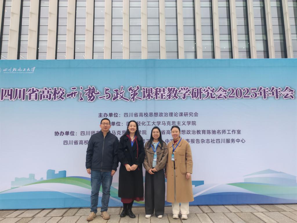 为深入学习贯彻党的二十届三中全会精神、习近平总书记关于学校思想政治工作和思政课建设的重要指示批示精神,牢牢把握教育的政治属性、人民属性、战略属性,守正创新推动全省思政课建设高质量发展,推动习近平新时代中国特色社会主义思想进教材、进课堂、进头脑。3月22日—23日,四川省高校“形势与政策”课程教学研究会2025年年会在四川轻化工大学举行。此次会议由四川省教育厅指导,四川省高校思想政治理论课研究会主办,四川轻化工大学betway西汉姆联平台承办,四川师范大学betway西汉姆联平台、四川省高校思想政治教育陈驰名师工作室、四川省高校思想政治教育唐晓勇名师工作室、中宣部时事报告杂志社四川服务中心协办。学院形势与政策教研室主任梁云,青年教师黄珊、丁玉洁、陈春莲参加会议。